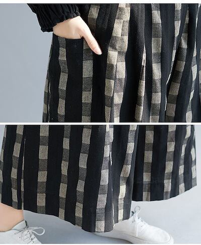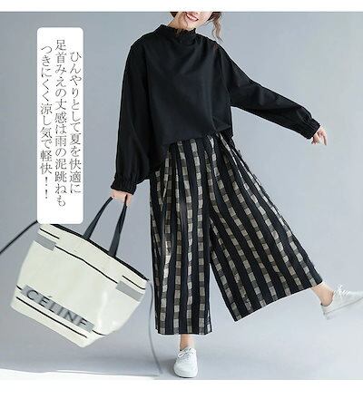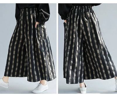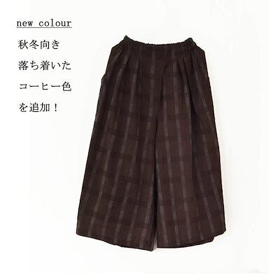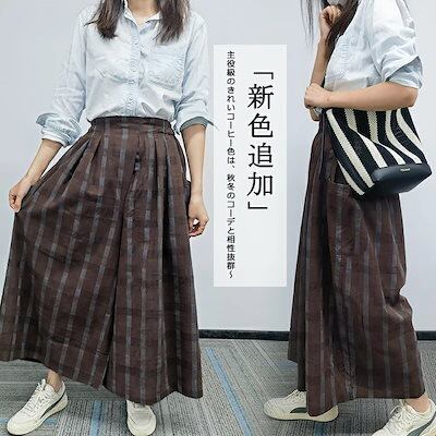 在庫限りパンツ レディース ワイドパンツ ガウチョパンツ 秋 体型カバー スカチョ ウエストゴム チェック柄 綿麻風 着痩せ ロングパンツ リラックス カジュアル風 ハイウエスト 大きいサイズ