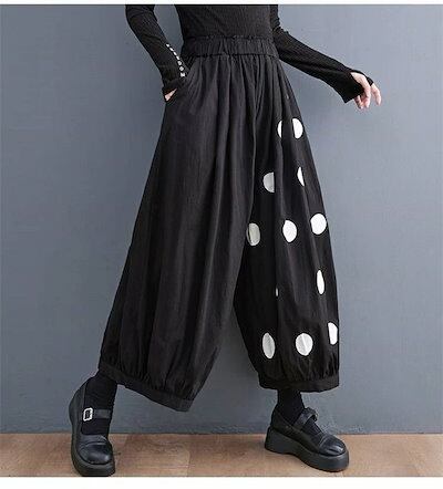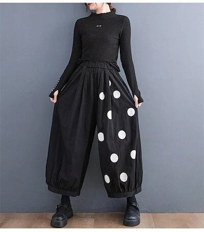 数量限定ワイドパンツ ワイド パンツ レディース バルーンパンツ 春秋 ガウチョパンツ イージーパンツ ドット柄 ボトムス ズボン バギーパンツ ポケット付き ゆったり 体型カバー 着?せ 美脚 シン
