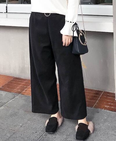 人気SALE レディース ワイドレッグパンツ アンクルパンツ クロップド 半端丈 ハイウエスト ボトムス カジュアル 可愛い フェミニン きれいめ エレガント おしゃれ お出かけ オフィス ブラック
