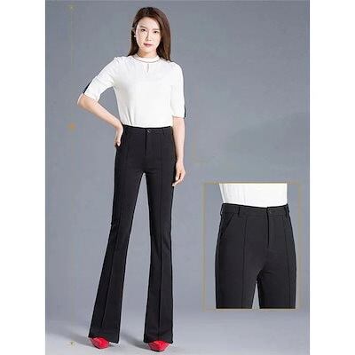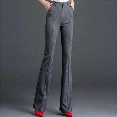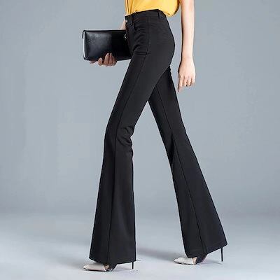 メガ割 パンツ スーツパンツ フレアパンツ トランペットズボン スラックスパンツ レディース ?風 ビジネス ロング スラックス 通勤 オフィス L 着痩せ
