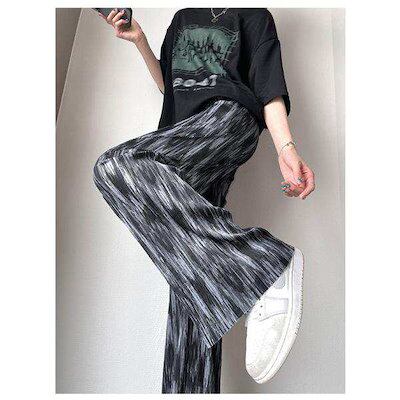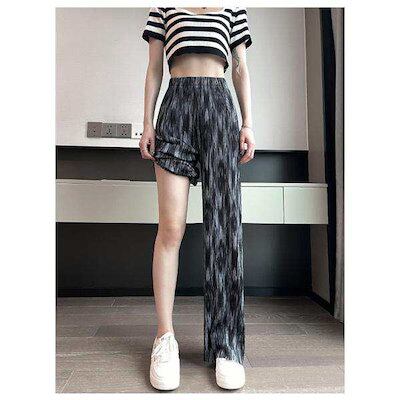 ワイドパンツ レディース ガウチョパンツ ボトムス フェミニン ゆったり 楽ちん ストレート リラックス ズボン 接触冷感 絞り染め 着痩せ 送料無料