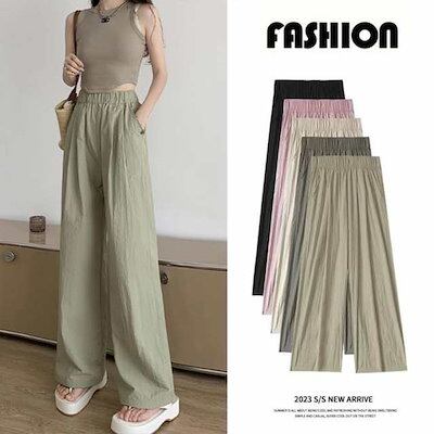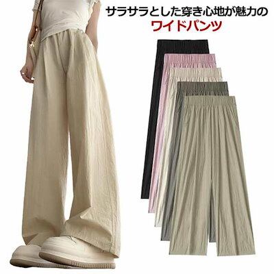 【2025新作SALE】ワイドパンツ ロングパンツ さらさら パンツ レディース ひんやり イージーパンツ 夏 涼しい 薄手 ストレートパンツ ウエストゴム シワ加工 接触冷感 おしゃれ ボトムス 長