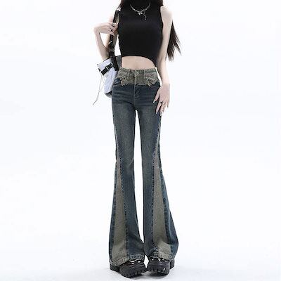 パッチワーク デニムボトムス レディース デザイン感 ゆったり ハイウェスト 扎UN?色 ラックスパンツ ワイドパンツ ジョガーパンツ