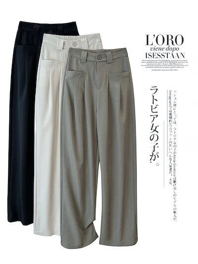 カジュアル ハイウェスト コーディネート 着痩せ パンツスーツ 春夏 薄い 無地 ドレー プ感 ストレートパンツ レディース 仕事用 ジョガーパンツ 通勤 ワイドパンツ