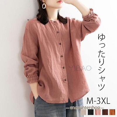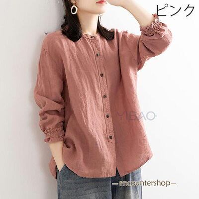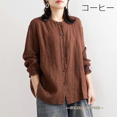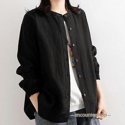 ブラウス シャツブラウス シャツ おしゃれ コットン カーディガン 前開き レディース トップス tシャツ チュニック 大きいサイズ30代 40代 50代ラウンドネック