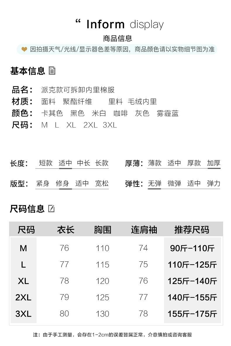 サイズ:M推奨90-110kg,L推奨110-125kg,XLは125〜140kgを推奨,2XL推奨140-155kg,3XL推奨155-175kg 色:褐色,クリーミーホワイト,黒,スモーキーブルー,グレー,カーキ サイズ参考cm 単位;cm サイズなどの寸法は、お気軽にメッセージにてお問合せ下さい ▼▼アプリの「ショップフォロー」で お得な割引クーポンをお配りしています 表示価格から、更にお得にGetできますよ 2-3cm位の誤差あります。 ▷▷ご希望のサイズをお選びください。 【 注意事項】 ◎しっかり検品しておりますが、海外製品のため、多少のほつれやキズ、汚れ等が付着している場合がございます。予めご容赦ください。 多少の誤差があります、表記寸法と実寸値の多少の誤差はご容赦ください。 商品について サイズ交換、お色交換などの返品、交換は行っておりませんので十分にお確かめの上、ご購入お願い致します。 海外製品は日本の物に比べて縫製が粗い場合がございます。糸の始末が悪い、ファスナーが上がりにくい、ボタンのつけ方が甘いという事は海外基準では返品対象となりませんのでご理解の程宜しくお願い致します。 カラー・サイズをしっかりご確認の上、ご注文下さいませ。 イメージ違い、サイズ違い等による返品は基本的にお受けできません。ただ、ご不便な点がありましたら商品到着の1週間以内にご連絡ください。海外製品は日本製の物に比べて、多少品質が落ちます。糸の端の未処理、少し縫い直すことで修繕できる範囲のほつれなどは基本的に返品の対象外ですので、ご了承ください。当店で検品の上、お客様へ出荷を致しております。万が一、開封時の破れ、シミ、明らかに掲載写真と別の物が到着した場合は、商品到着の【1週間以内】に 商品の該当の部分の写真を添付しご連絡ください。3営業日以内にご返答致します。 ▼▼▼▼ ◎ご注文後、ご希望の商品の在庫を 確認いたします。 ◎在庫切れ、生産中止となっている ケースもございます。 ◎その場合はキャンセル、 もしくは返金対応とさせていただきます。 【お届けまでの目安】 注文確定後10-18日程度で お届けとなります。 大型連休の場合は、 上記のお届け予定より10日以上遅れます。 733994855078TB
