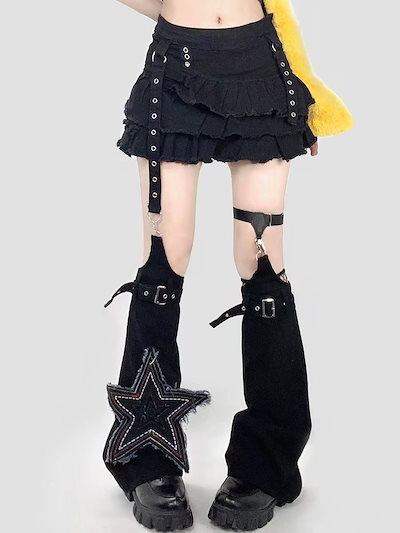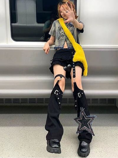 ダメージデニムパンツ Y2K ワイドパンツ ブラック モップパンツ あしの長いカバー