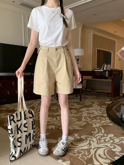 2024 春夏パンツ ハーフパンツ 5分丈 タック ワイド ハイウエスト 美脚効果 脚長効果 細見え 夏 おしゃれ かわいい 韓国ファッション レディース お出かけ