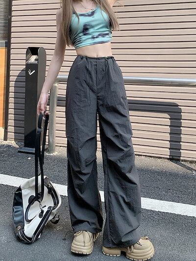 2024春夏パンツ ロング丈 ワイド ストレート ハイウエスト 美脚効果 脚長効果 細見え 夏 白 黒 おしゃれ かわいい 韓国ファッション レディース お出かけ