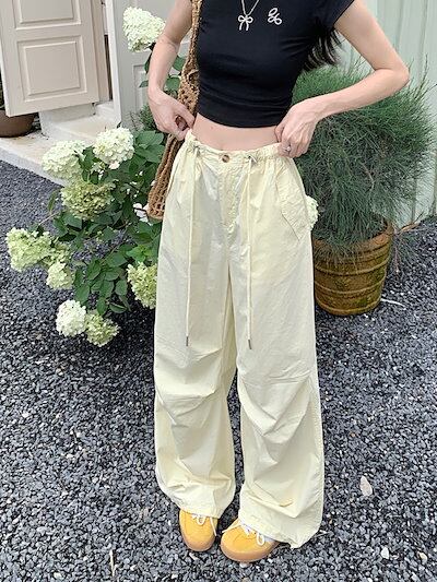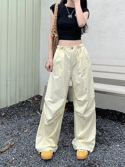 2024春夏パンツ カーゴパンツ ロング丈 ワイド ストレート ハイウエスト 美脚効果 脚長効果 細見え 夏 白 黒 赤 おしゃれ かわいい 韓国ファッション レディース お出かけ
