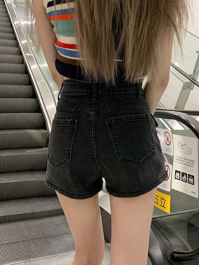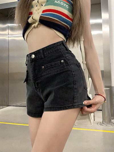 2024 春夏パンツ デニム ショート丈 ハイウエスト 脚長効果 美脚効果 細見え 夏 黒 ブラック かわいい カジュアル 韓国ファッション レディース お出かけ