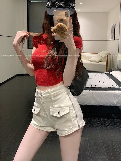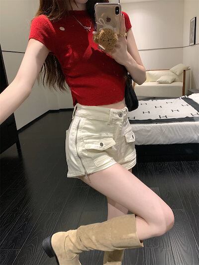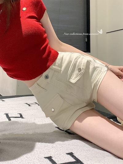 2024 春夏パンツ デニム ジーンズ ハーフパンツ ハイウエスト 脚長効果 美脚効果 レッグ 細見え付き カジュアル加工 かわいい おしゃれ 春 韓国系ファッション レディース お出かけ