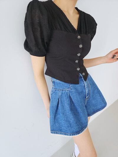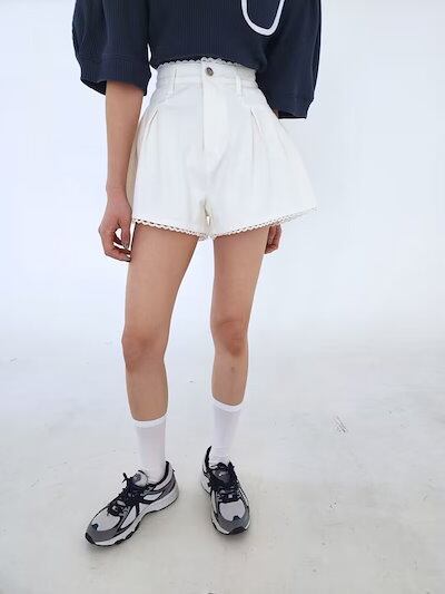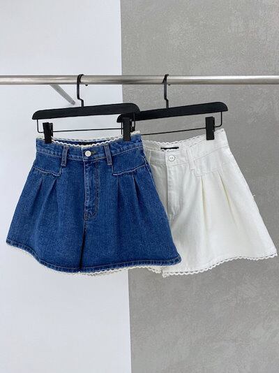 2024 春夏パンツ デニム ジーンズ ショート丈 Aライン フレア ワイド ゆったり ハイウエスト 美脚効果 脚長効果 細見え 夏 青 白 おしゃれ かわいい キュート ガーリー 韓国ファッション