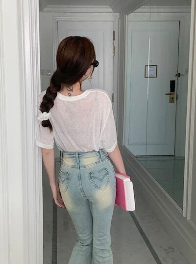 2024春夏パンツ デニム ジーンズ スキニー ワイドレッグ ハイウエスト 脚長効果 美脚効果 細見え ダメージ加工 春 白 水色 カジュアル おしゃれ かわいい 韓国ファッション レディース お出か