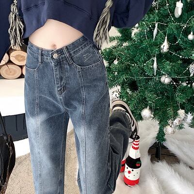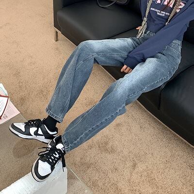 2024 春夏 パンツ デニム ジーンズ ロング丈 ストレート ジーンズ ゆったり ハイウエスト 脚長効果 レッグ美脚効果 細見え 秋 カジュアル ストリート 加工 韓国ファッション お出かけ
