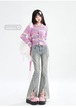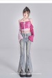 2024夏 韓国 デニムパンツ ボトムス ジーンズ ハイウエスト ファッション系ワイド スタイルサイド紐が付い ゆるダボ ジーンズ シルエット加工 レディース カジュアル メンズライク