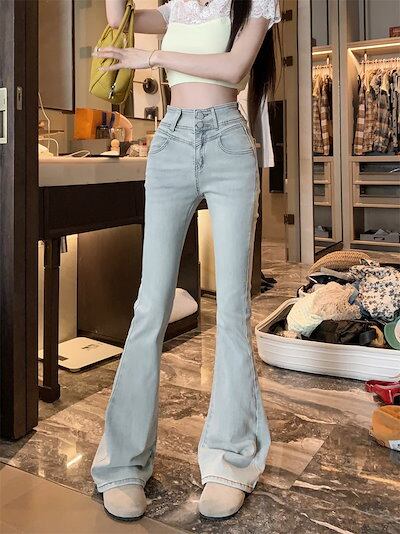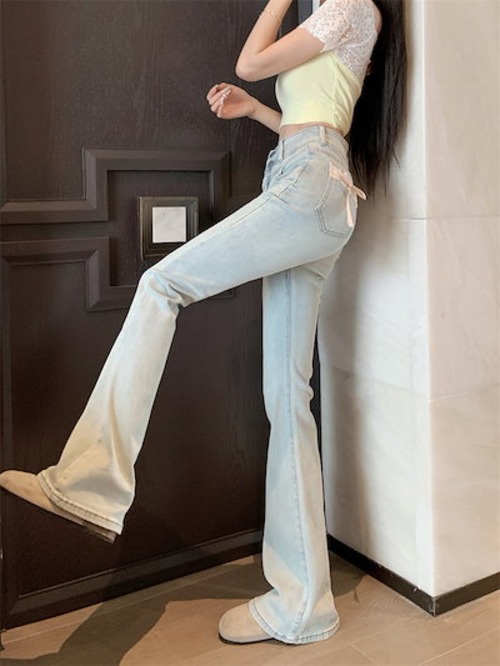 2024 春夏パンツ ロング丈 ジーンズ レッグ ハイウエスト 美脚効果 脚長効果 細見え おしゃれ かわいい ファッション系