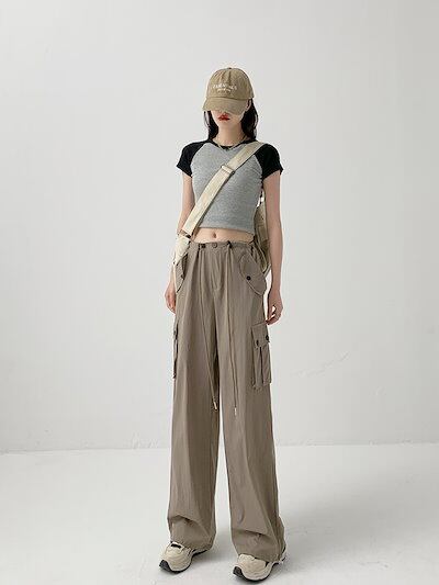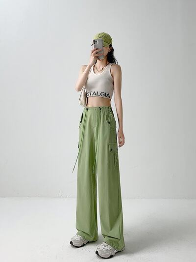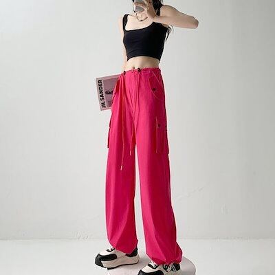 2024春夏ロングパンツ ルーズ ワイドパンツ ワイドレッグ ボトム ハイウエスト ポケット付き シンプル カジュアル 韓国ファッション