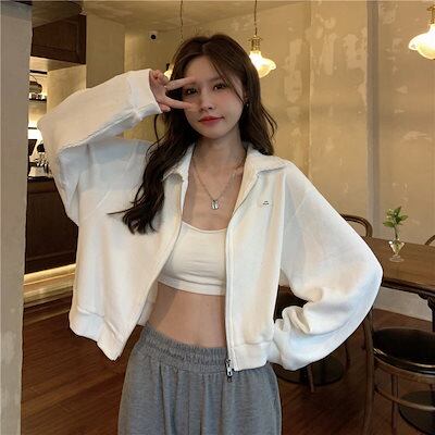 2024 春夏 ショート かわいい フル ブルゾン トップス アウター ショート スタンド ショート お出かけトラックハイ ストリートアウター長袖 セクシートップスカジュアルファッション秋