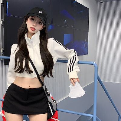 2024春夏 ブルゾン ショート かわいい フル ブルゾン トップス アウター ショートハイ スタンド ショートストリートレディース長袖 セクシートップスカジュアルファッションお出かけトラック