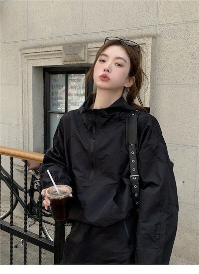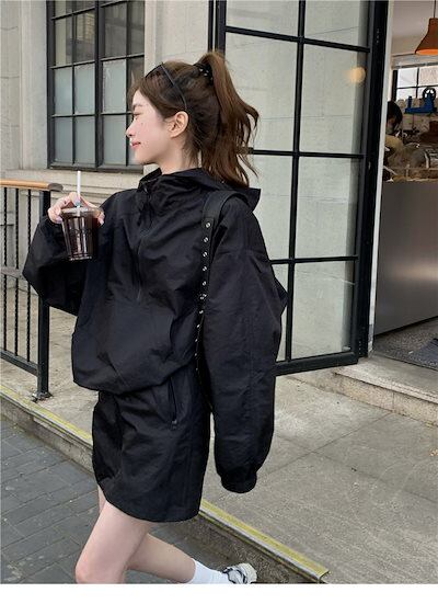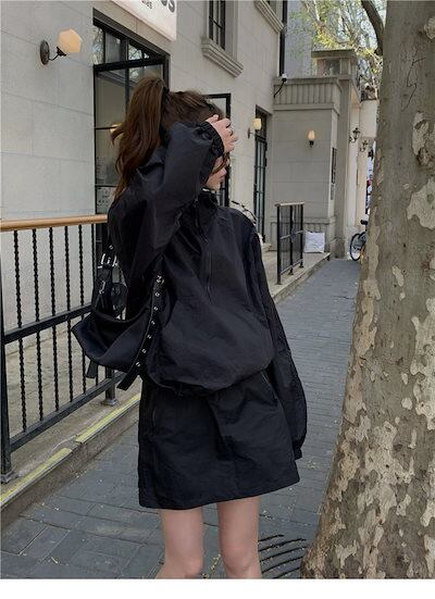 フェス2024 春夏 アウター ブルゾン 羽織り ゆったり ボトムスフルフレンチスリーブシルエットウエストゴム サイズミニスカートハーフカジュアル ストリート フェス レジャー お出かけトラック