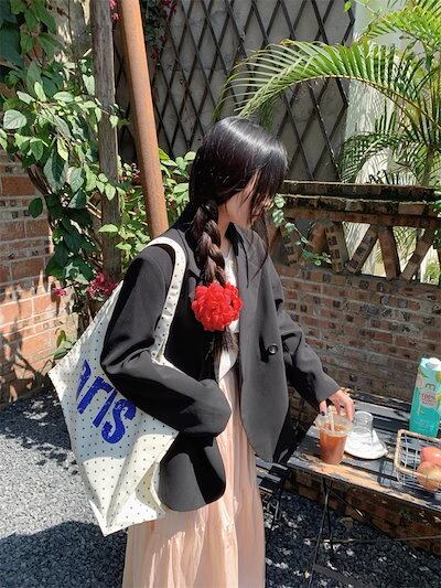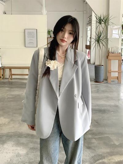 2024春夏アウター コート スーツ テーラード カラー ボタン 丈長め 春 水色 黒 韓国ファッション レディース おしゃれ かわいい きれいめ 大人っぽい お出かけ