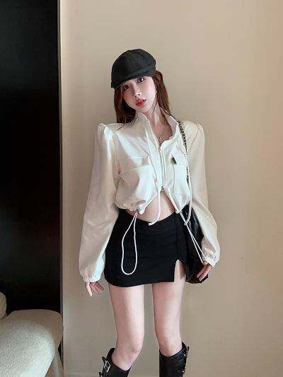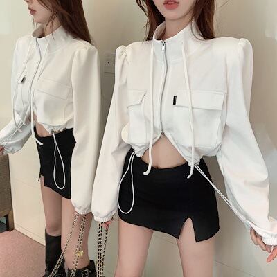 2024春夏 アウター ショート ブルゾン かわいいフル ブルゾン トップス ハイスタンド ショートストリートレディース長袖 カジュアル ファッションお出かけトラック