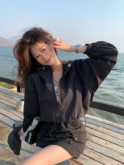 2024春夏 ショート かわいい フル ブルゾン トップスアウター ショート丈 スタンドショートお出かけハイストリートアウター長袖セクシートップスカジュアルファッションお出かけ秋トラック