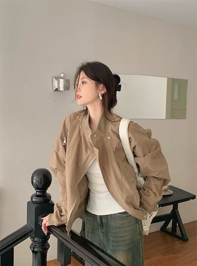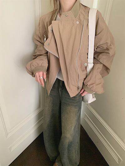 2024春夏 ショート かわいい フル ブルゾン トップス アウター ショート スタンド ショート お出かけハイストリートアウター長袖セクシートップスカジュアルファッションお出かけ 秋トラック