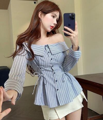 2024 春夏 アウター 長袖トップス ジャケット ブラウス ホワイト ブラウス ブルー フェミニン 上品 きれいめ 夏 羽織 通勤 お姉さん 大人っぽ 大人女子 ファッション