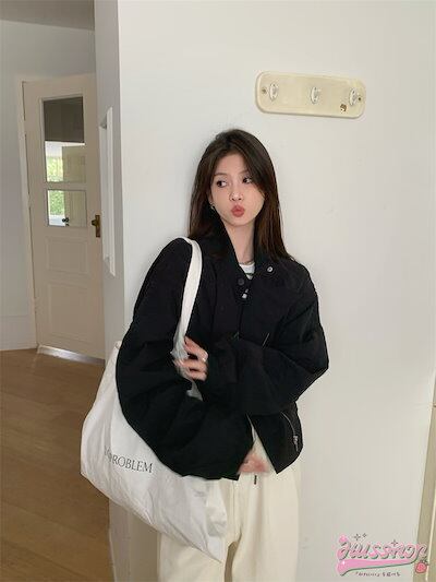 2024春夏アウター コート ジャケット トレンチ ショート丈 ジップ 斜めチャック ゆったり 春 茶色 黒 韓国ファッション レディース おしゃれ かわいい カジュアル お出かけ