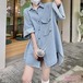2024春夏 デニムシャツ ジャケット レディース 半袖 お洒落 BIGシャツ ゆったり カジュアル ロングシャツ 体型カバー トップス レトロ デニムチュニック シャツワンピ カーディガン ライトア