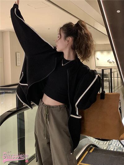 2024 春夏 ブルゾン トップス アウター ショート スタンド ストリート ファッション ハイ アウターサイズ 長袖 セクシー トップス カジュアル スタイルアップ お出かけ 秋冬トラック