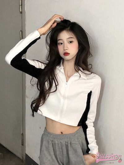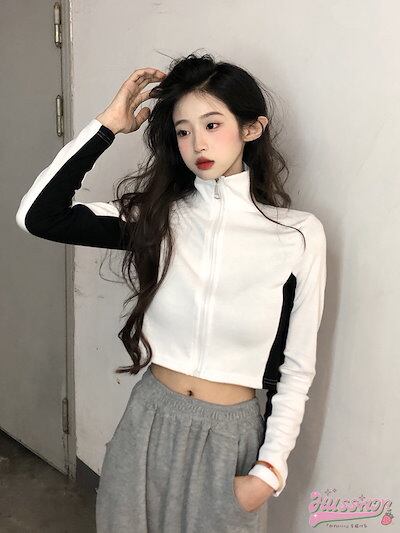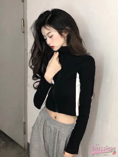 期?限定 ブルゾン ハイネック ライン入り トラックトップス アウター ショート スタンド スポーティー ストリート 長袖 セクシー トップススポーティーカジュアルスタイルアップお出かけ秋冬