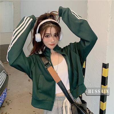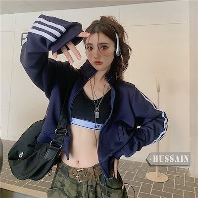 ブルゾン ハイネック ライン入り ジップ ブルゾン トップス アウター ショート スタンド ネック ストリート レディース 長袖 セクシー トップス カジュアル スタイルアップ お出かけ夏秋