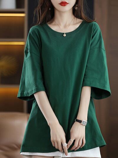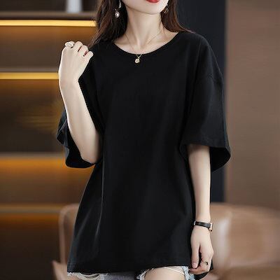 無地 tシャツ 半袖 レディース 夏定番 百掛け Tシャツ ゆったり ロングTシャツ大きいサイズ 体型カバー トップス カジュアルTシャツカットソー 韓国ファッション インナー