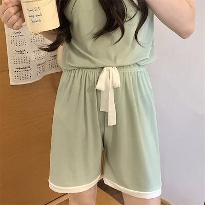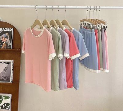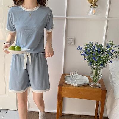 無料 夏 アイスシルク 部屋着 シンプル 無地 ルームウェア セットアップ 夏 快適お肌に優しいパジャマ レディース半袖パジャマ二点セット 怠惰な風 ゆったりカジュアル