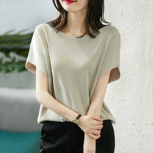 2024夏 新作 tシャツ レディース アイスシルク ニット半袖 韓国ファッション 百掛け 半袖トップス 冷感 通勤 カジュアル20代30代40代ドルマンスリーブシャツ