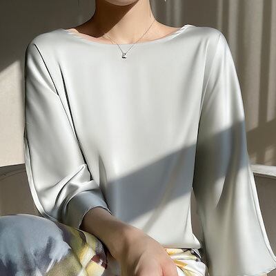 シアーシャツ 上品】サテンブラウス シンプル 高級感 シャツ レディース 九分袖 Tシャツ 韓国ファッション 上品無地 通勤インナー 百掛け 半袖トップス 20代30代 40代