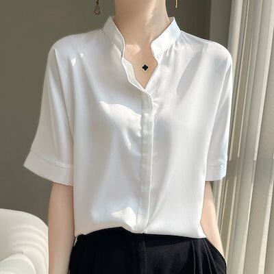 シアーシャツ 【上品】サテンブラウス レディース 上品 大人 無地 通勤半袖 Tシャツ 韓国ファッションシンプル 高級感アイスシルク 20代30代