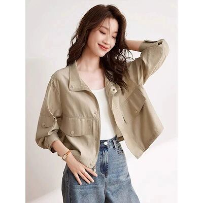 アウター 無地 薄 ワークウェア ジャケット 夏 秋 ルーズ ショート カジュアル 多用途 通気性 日焼け防止ウェア トップス 韓国