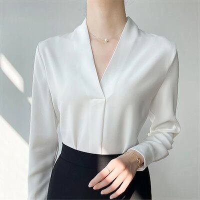 今っぽシアーシャツ ホワイト フレンチ 春と秋の新作 ファッション ロングスリーブ Vネック シャツ 多用途 トップス 韓国