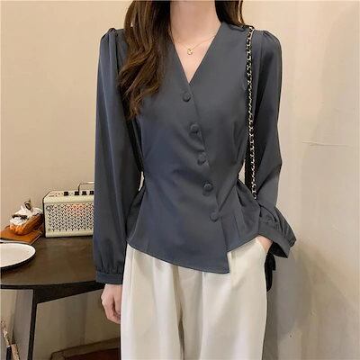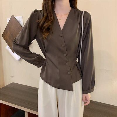 今っぽシアーシャツ 年春と秋の新作 韓国版 デザインセンス ニッチ 気質 シャツ Vネック シック トップス レディース