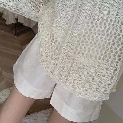 トップス ブラウス 夏 韓国 あちこち やせて見える ゆとりがある 日焼け止めの上着シースルー ボーダー ニット