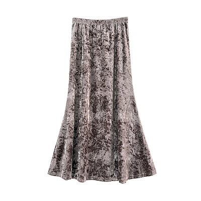 プリーツスカート 秋冬 ロングスカート じゅんしょく ベルベット 光沢感スカート 韓国ファッショ 着痩せ
