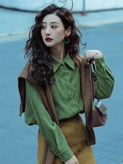 長袖シャツ トップス 緑のシャツ 秋 長袖シャツ カジュアル ファッション 百掛け やせて見える