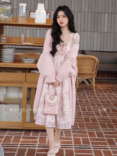 ワンピース レディース フランス プリントのロングスカート 長袖 ファッション 百掛け やせて見える