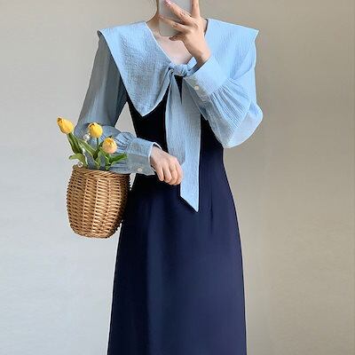 ワンピース レディース フランス 長袖ワンピース カジュアル 快適 ファッション 百掛け やせて見える