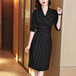 シャツワンピース ドレス レディース 2024 秋新作 長袖 ウエストスリム ストライプ パッケージ ヒップスカート