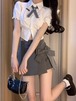 春と秋のスカート a字スカート スリット ハイウエスト やせて見える 美脚 韓国ファッション タイトスカート レディー